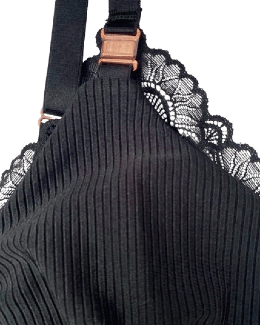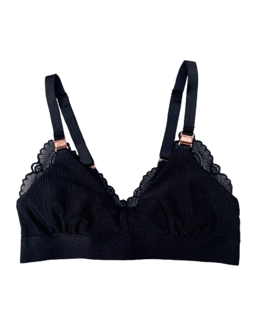 - Bralette para lactancia en rib satinado con detalles de encaje.