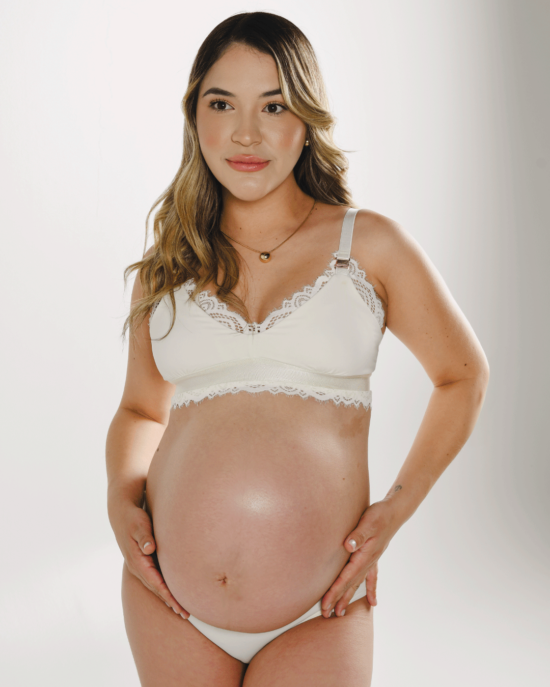 - Bralette para lactancia en microfibra con detalles de encaje.